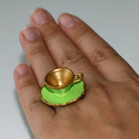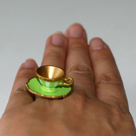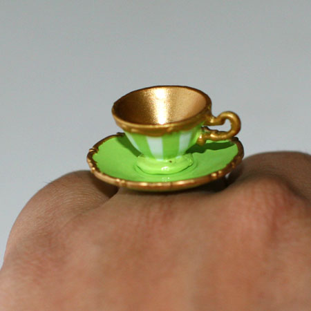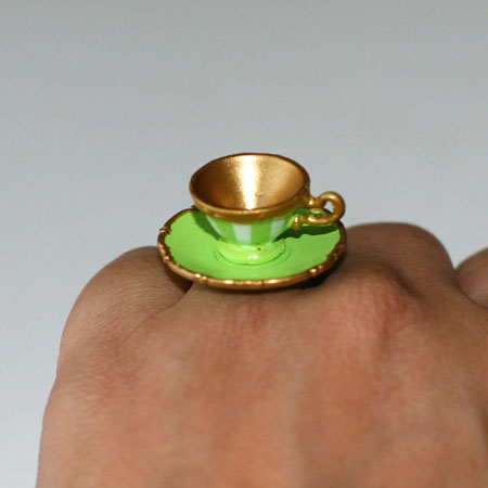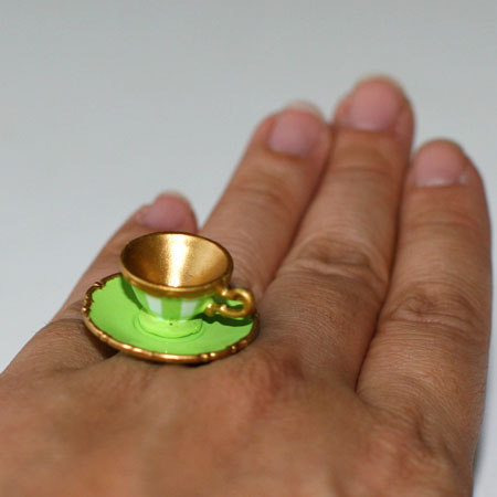 Kawaii Cute Miniature Food Ring - Green Teacup and Saucer