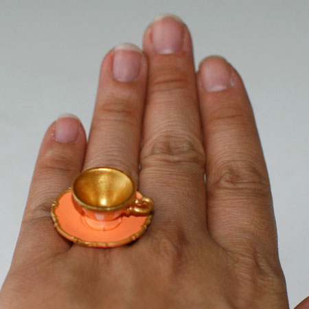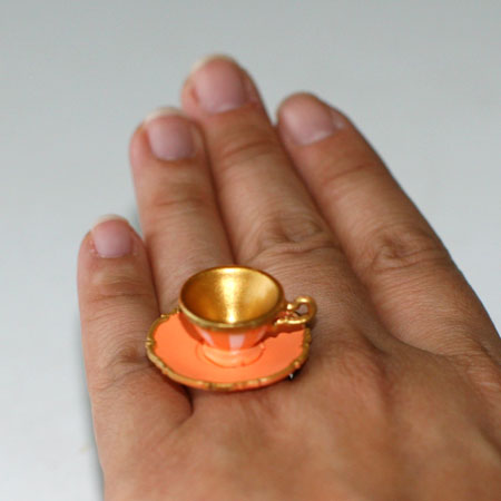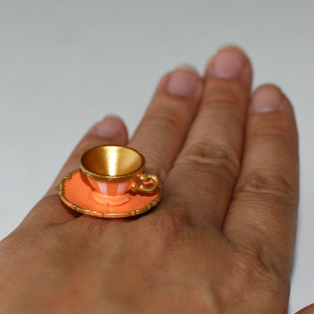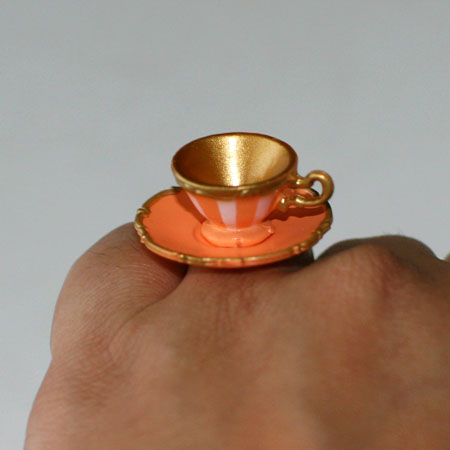 Kawaii Cute Miniature Food Ring - Orange Teacup and Saucer