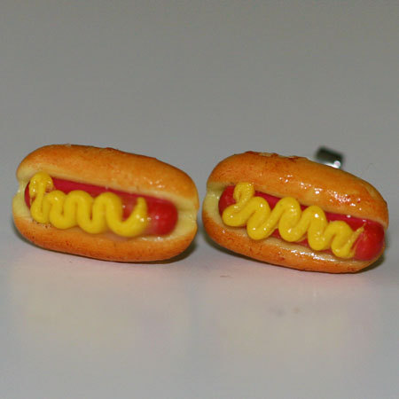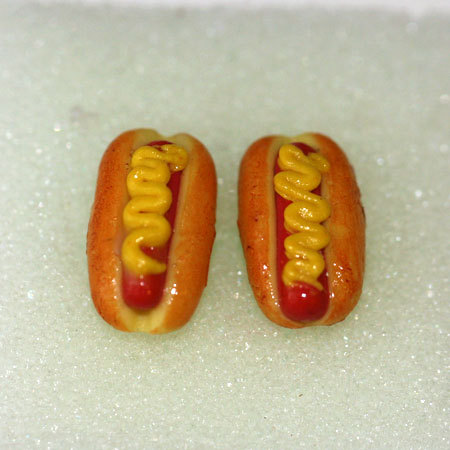 Kawaii Cute Miniature Food Earrings - Hot Dog with Mustard