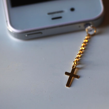 ♥♥ GOLD CROSS EARPHONE PLUG ♥♥