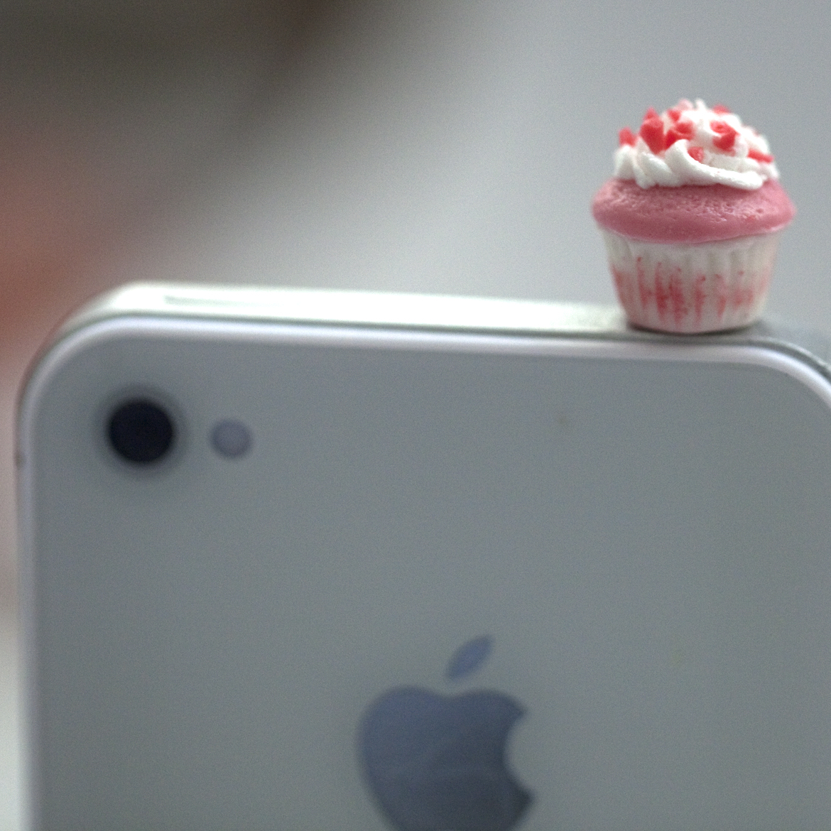Kawaii Mini PINK CUPCAKE with SPRINKLES Iphone Earphone Plug/Dust Plug - Cellphone Headphone Handmade Decorations