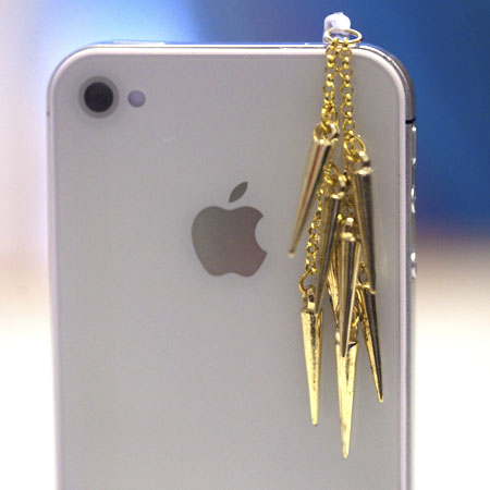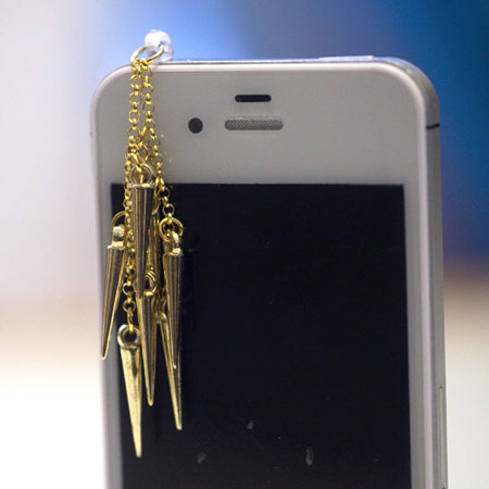 Elegant GOLD SPIKES Iphone Earphone Plug/Dust Plug - Cellphone Headphone Handmade Decorations