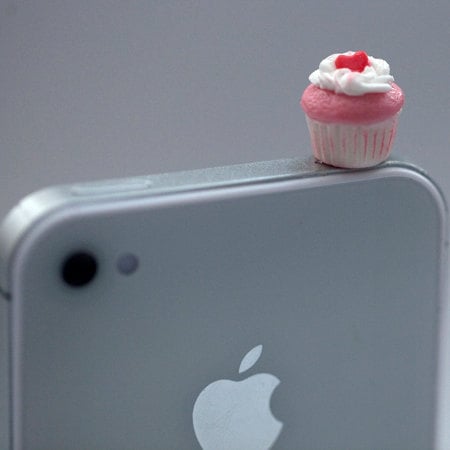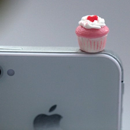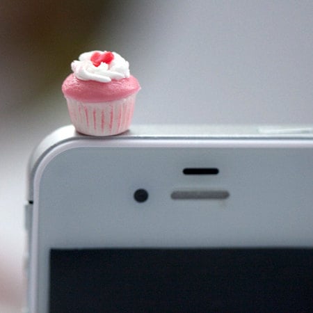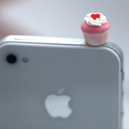 Kawaii Mini CUPCAKE with PINK HEART Iphone Earphone Plug/Dust Plug - Cellphone Headphone Handmade Decorations