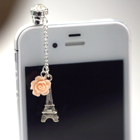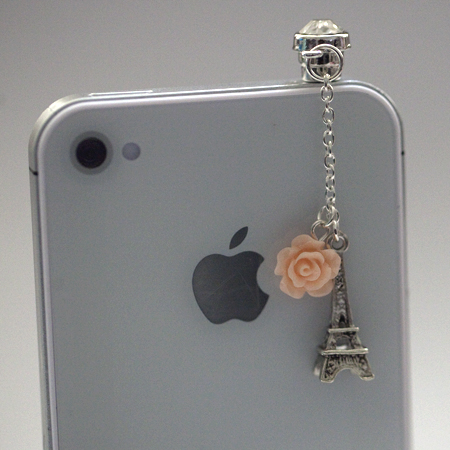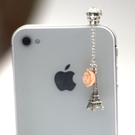 Kawaii MIni Eiffel Tower with Pink Rose Iphone Earphone Plug/Dust Plug