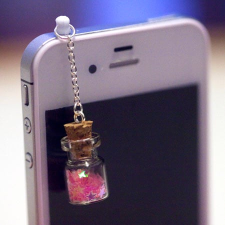 This is a Super Cute (Kawaii) WISHING STARS BOTTLE in 3 COLORS ear plug that fits into a 3.5mm headphone jack : iphone 4/4G/3G, HTC, Blackberry, iPad 1/2, other product with 3.5mm headphone jack.