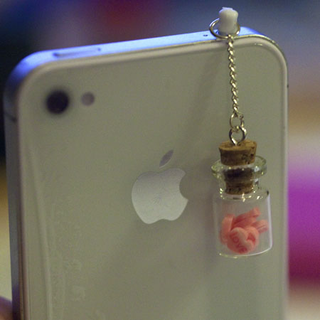 Kawaii LOVE BOTTLE with Pink Hearts Iphone Earphone Plug/Dust Plug - Cellphone Headphone Handmade Decorations