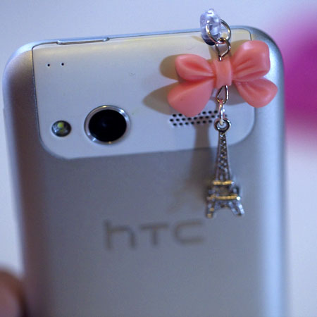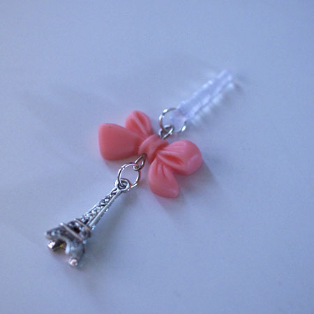 Kawaii MIni Eiffel Tower with Pink Ribbon Iphone Earphone Plug/Dust Plug