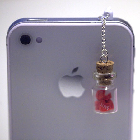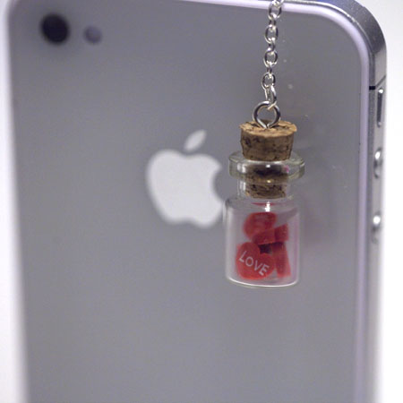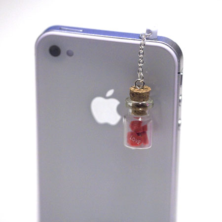 Kawaii LOVE BOTTLE with RED Hearts Iphone Earphone Plug/Dust Plug - Cellphone Headphone Handmade Decorations