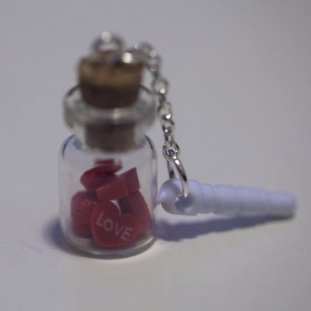 ♥♥ LOVE BOTTLE with RED HEARTS EARPHONE PLUG ♥♥