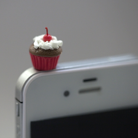 Kawaii MINI CHERRY CUPCAKE Iphone Earphone Plug/Dust Plug - Cellphone Headphone Handmade Decorations