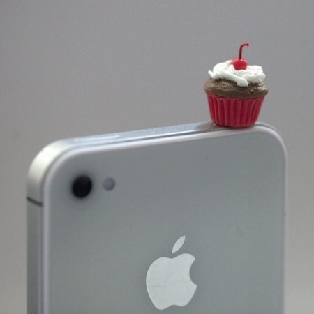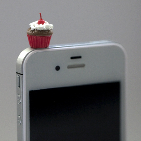 This is a Super Cute (Kawaii) MINI CHERRY CUPCAKE ear plug that fits into a 3.5mm headphone jack : iphone 4/4G/3G, HTC, Blackberry, iPad 1/2, other product with 3.5mm headphone jack.