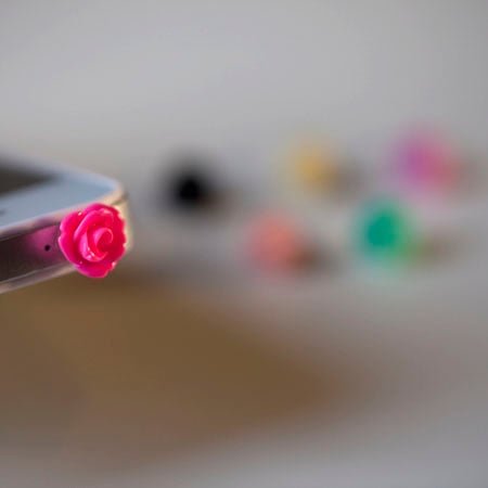Kawaii SMALL ROSE in 4 COLORS Iphone Earphone Plug/Dust Plug - Cellphone Headphone Handmade Decorations