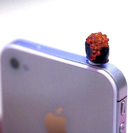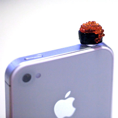 This is a Super Cute (Kawaii) IKURA (SALMON ROE) SUSHI ear plug that fits into a 3.5mm headphone jack: iphone 4/4G/3G, HTC, Blackberry, iPad 1/2, other product with 3.5mm headphone jack.