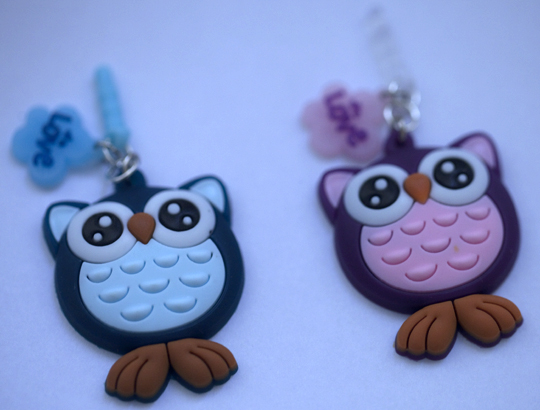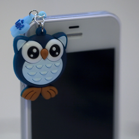 Kawaii OWL LOVE (BLUE) Iphone Earphone Plug/Dust Plug - Cellphone Headphone Handmade Decorations