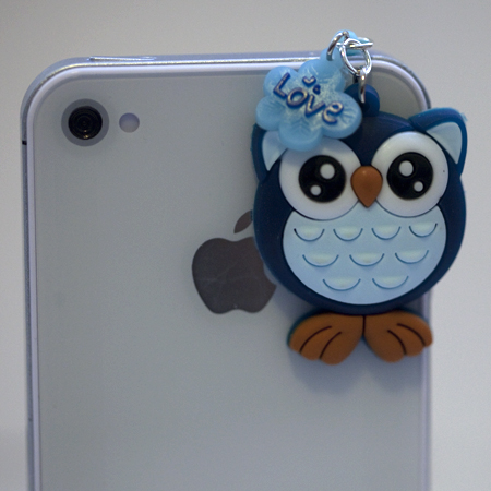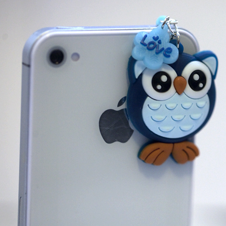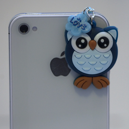 This is a Super Cute (Kawaii) OWL LOVE (BLUE) ear plug that fits into a 3.5mm headphone jack : iphone 4/4G/3G, HTC, Blackberry, iPad 1/2, other product with 3.5mm headphone jack.