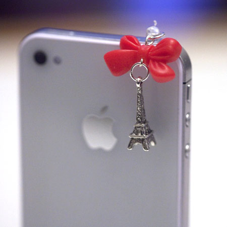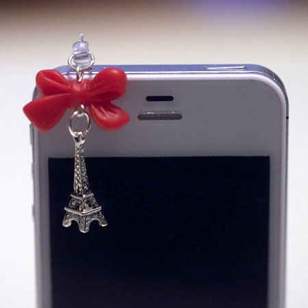Kawaii MIni Eiffel Tower with Dark Pink Ribbon Iphone Earphone Plug/Dust Plug