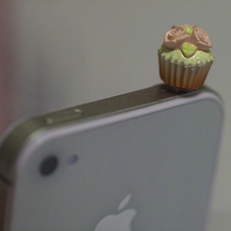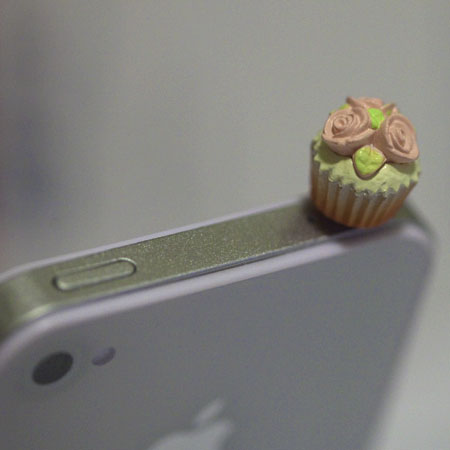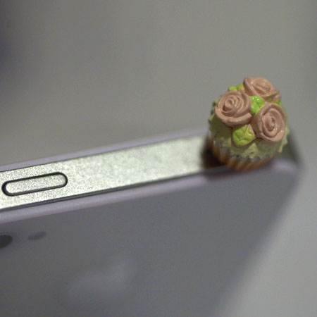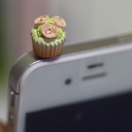 Kawaii PINK ROSE CUPCAKE Iphone Earphone Plug/Dust Plug - Cellphone Headphone Handmade Decorations