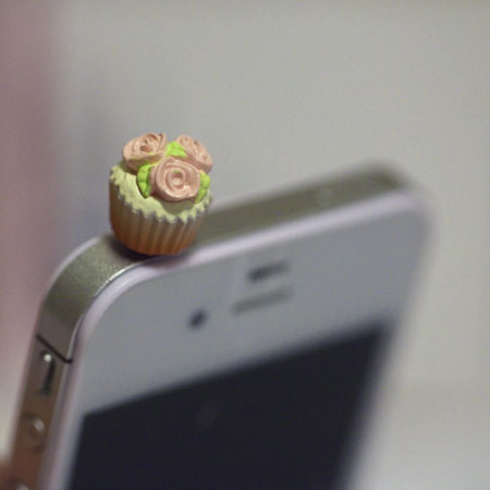 ♥♥ PINK ROSE CUPCAKE EARPHONE PLUG ♥♥