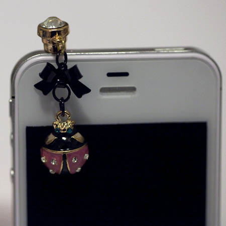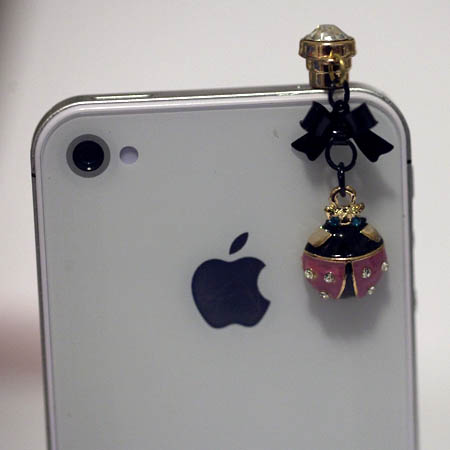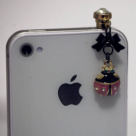 This is a very cute LADYBUG with BLACK BOW ear plug that fits into a 3.5mm headphone jack : iphone 4/4G/3G, HTC, Blackberry, iPad 1/2, other product with 3.5mm headphone jack.