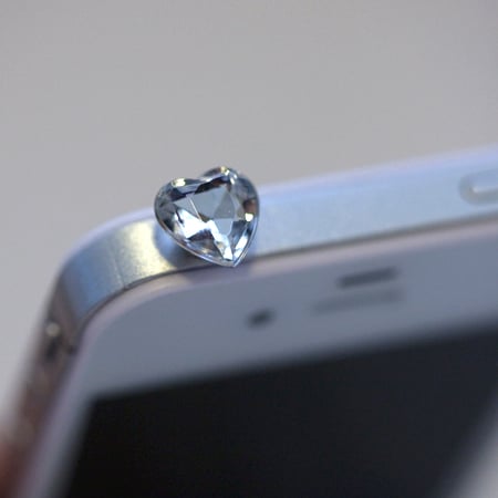 Kawaii CLEAR HEART RHINESTONE Iphone Earphone Plug/Dust Plug - Cellphone Headphone Handmade Decorations