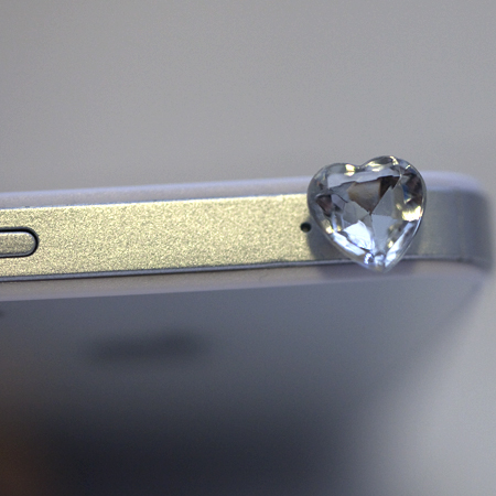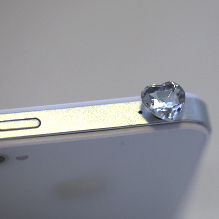 This is a Super Cute (Kawaii) CLEAR HEART RHINESTONE ear plug that fits into a 3.5mm headphone jack : iphone 4/4G/3G, HTC, Blackberry, iPad 1/2, other product with 3.5mm headphone jack.
