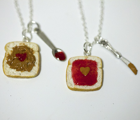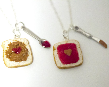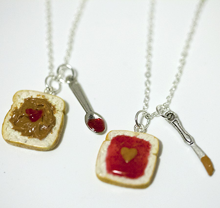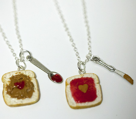 Kawaii Cute Miniature Food Necklaces - BFF Peanut Butter Jelly Heart Necklace Set with Knife and Spoon Best Friend Forever with Silver Plated Chain