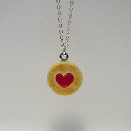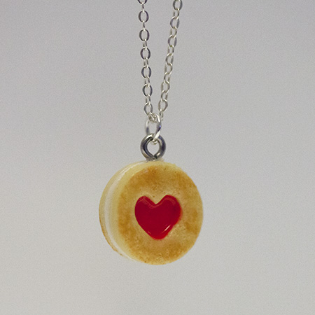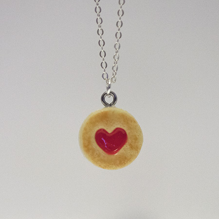 Kawaii Cute Miniature Food Necklaces - Strawberry Jam Cookies with Sterling Silver Chain