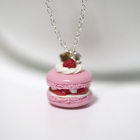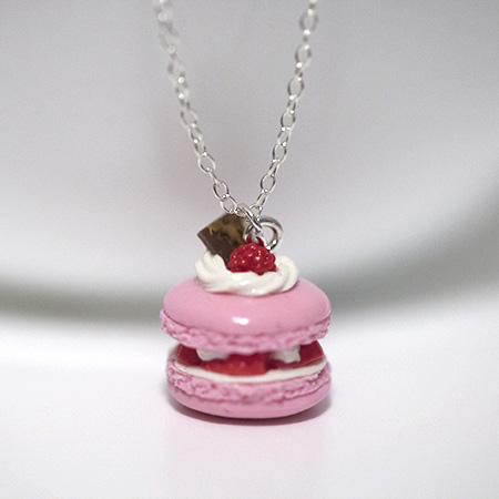 Kawaii Cute Miniature Food Necklaces - Raspberry Macaroon with Sterling Silver Chain